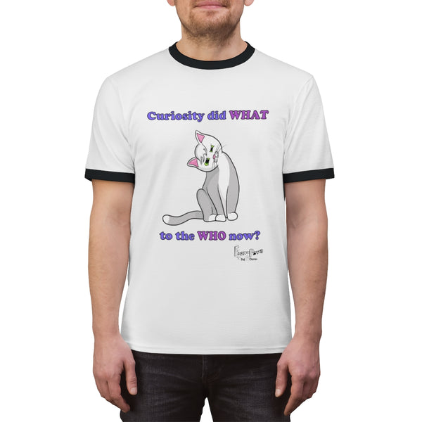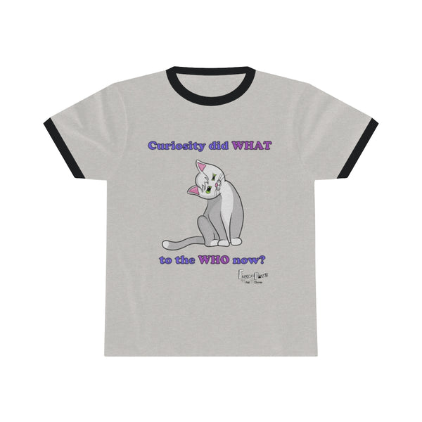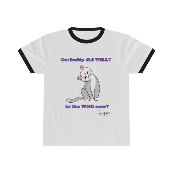 Revive the 'classic-cool' look in this Curiosity Cat-Unisex Ringer Tee! Available with a variety of base and accent colors, this light weight (5.4oz) T shirt is a summer-time must have purely for its versatility! Make heads turn as you hit the boardwalk or hit the gym. This shirt is for everyone!
