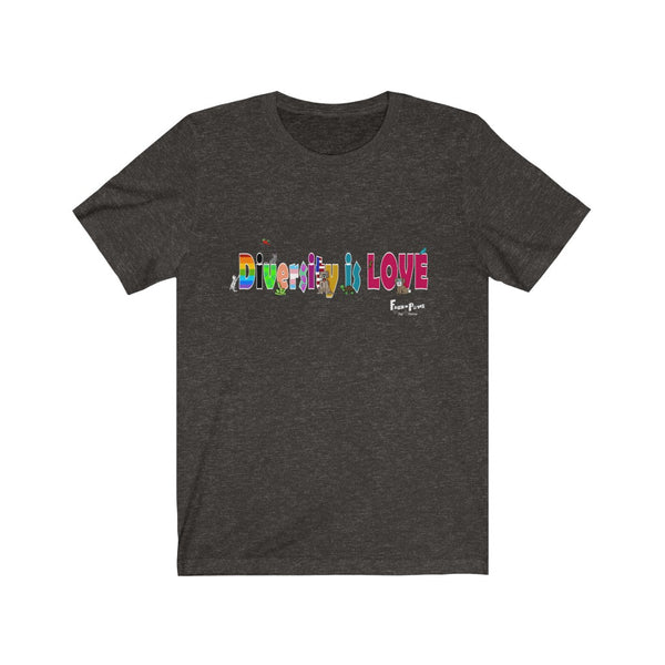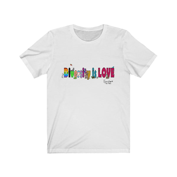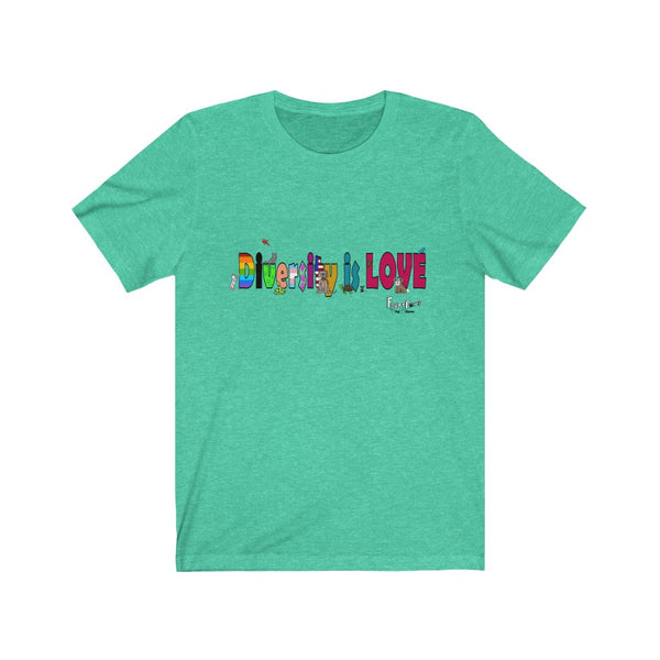 This Diversity is love-Unisex Jersey Short Sleeve Tee fits like a well-loved favorite. Super soft cotton and excellent quality print makes anyone want to fall in love with this graphic tee over and over again.