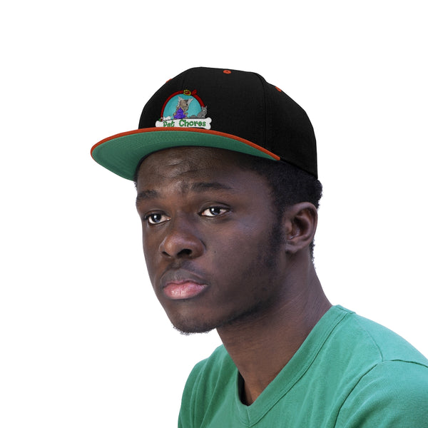 This Pet Chores-Unisex Flat Bill Hat is a modern take on a classic design. This hat is a perfect choice thanks to its sharp styling, spirited color and lively green underbill. The old-school snapback closure and iconic flat bill add a subtle charm that takes you back to the good ol’ days.