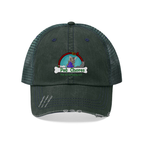 This Pet Chores-Unisex Trucker Hat will be the envy of your picnic, festival or tailgate party. A breathable mesh backing and herringbone cotton front give this hat a rugged look, while the pre-curved fray visor and unstructured crown guarantee a perfect natural fit from the moment you put it on your head.